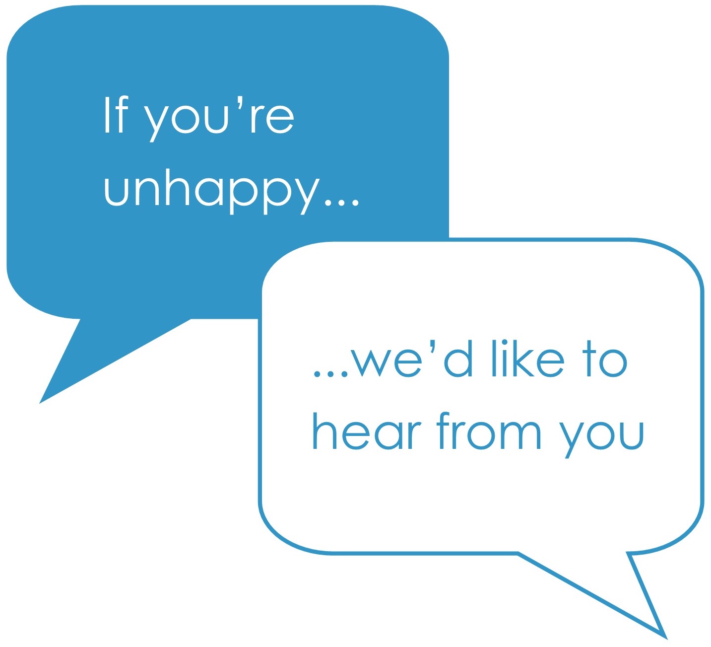 We are committed to providing high quality customer service. We value feedback and use it to help improve our services. If something goes wrong or you are dissatisfied with our services, please tell us.